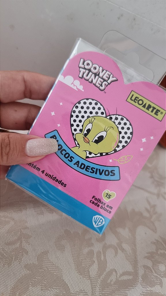 BLOCO ADESIVO LOONEY TUNES - CARTELA 3 DOBRAS C/ 4 BLOCOS 15F CADA - LEOARTE