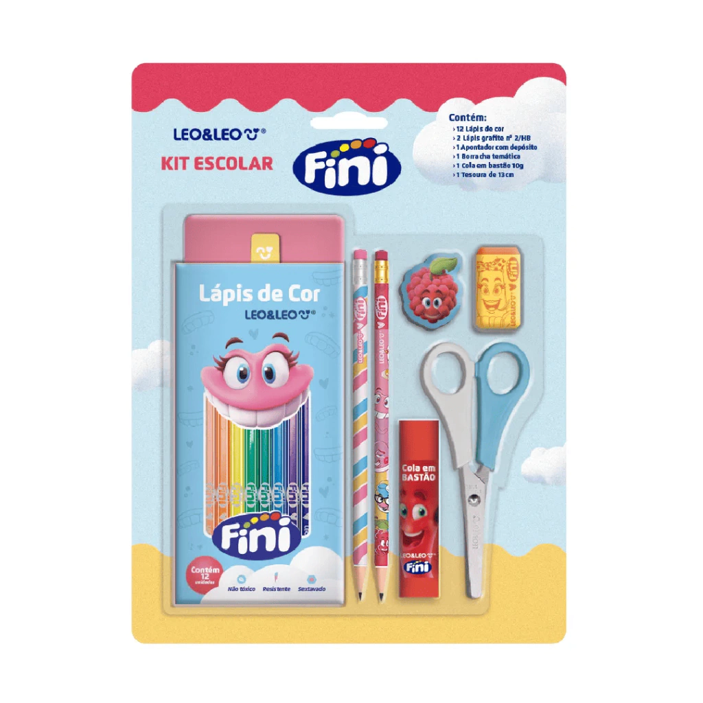 Com o Kit Escolar Fini, seu filho poderá desenhar, escrever e criar com facilidade. Ideal para o dia a dia escolar, ele é a companhia perfeita para todas as atividades. Não perca a oportunidade de colorir o aprendizado com a magia dos personagens da Fini!
